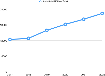 Varje år mäter Torns IF hur ungdomsverksamheten utvecklas. Målsättningen är att kontinuerligt ha ett ökande antal aktivitetstillfällen upp t.o.m. 16 års ålder. För femte året i rad innebär 2022 ett rekord. Under året deltog våra barn/ungdomar på aktiviteter i Torns IFs regi totalt 22 443 gånger tillsammans, en ökning med mer än 80% från 2017 års resultat på 12 422 tillfällen.