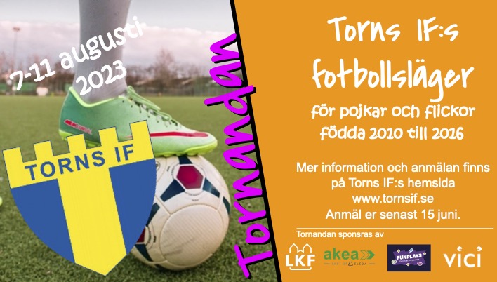Som vanligt sker Tornandan vecka 32, detta år innebär det 7-11 augusti. Flickor och pojkar födda 2010-2016 är välkomna att delta.
