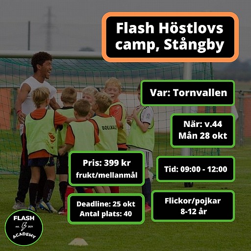 Det är återigen dags för höstens mest efterlängtade fotbollscamp! Under höstlovet arrangerar Flash Academy som drivs av Nawid, tidigare spelare i Torns IF, det populära Flash Camp på Tornvallen i Stångby.