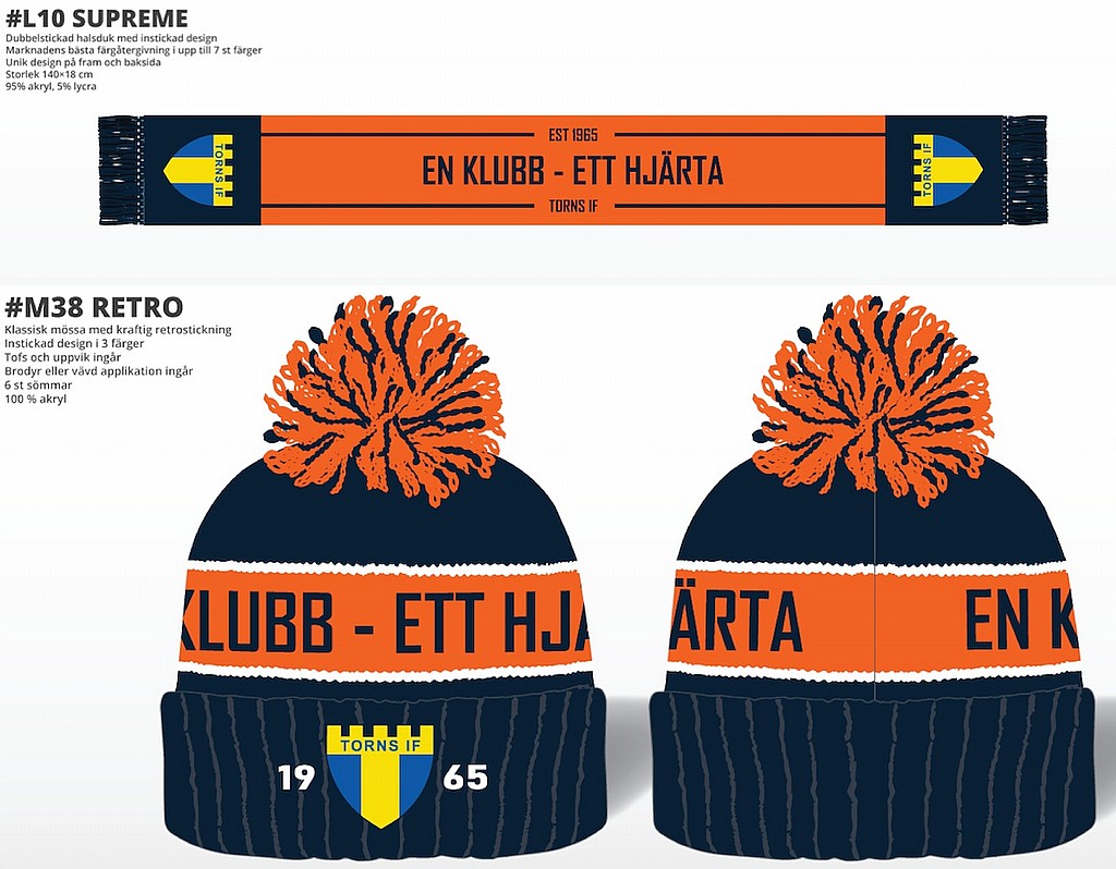 Nu har vi även halsduk och mössa till försäljning i Tornshopen. En perfekt julklapp till Tornsupportrar.