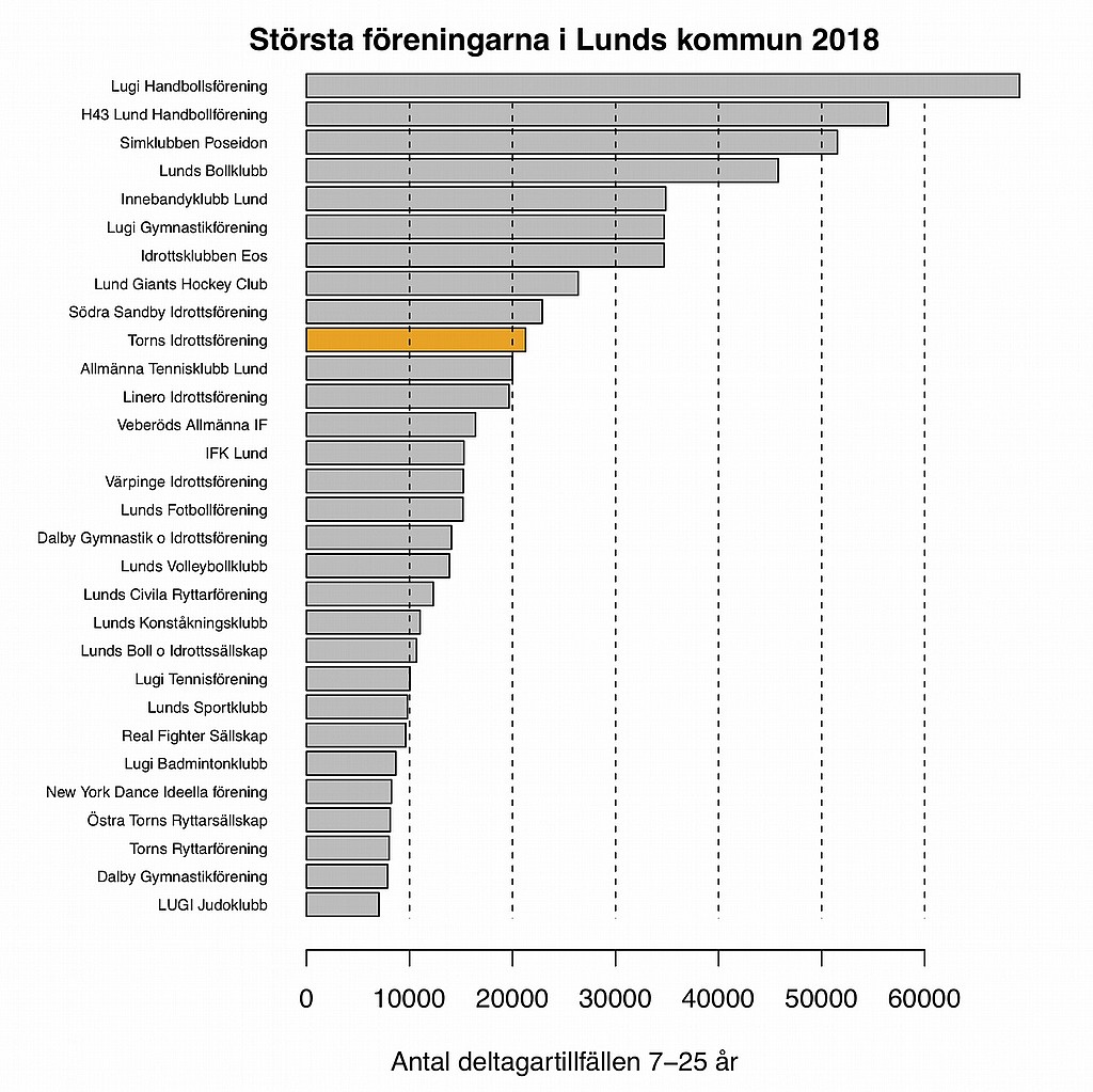 Torns IF är den tionde största idrottsföreningen i Lunds kommun enligt Riksidrottsförbundets (RF) statistik över de aktiviteter med deltagare i åldern 7 till 25 år som föreningarna har haft under 2018. Totalt erhöll 110 föreningar i Lunds kommun aktivitetsstöd från RF för 2018.