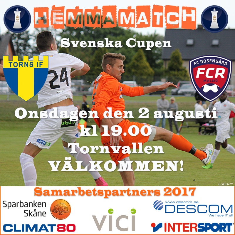 Motståndare är som sagt FC Rosengård. Ett av två lag som gick upp i fjol från vår serie. Lagen möttes i en träningsmatch i våras och då vann Torns IF med 3-0. I division 1 har man dock haft en kämpig vår och ligger för närvarande sist på 5 inspelade poäng. Hösten blir tuff men från det man hört och läst så har föreningen inte gett upp utan man jobbar för att hålla sig kvar.
