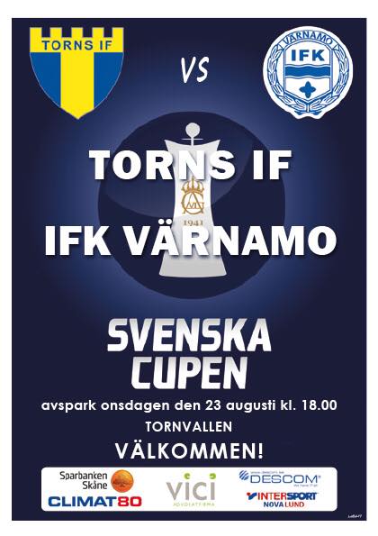 Nu är det dags för omgång 2 i svenska cupen. Vi tar emot IFK Värnamo från superettan. Avspark kl. 18:00 på onsdag 23 augusti. Ta vara på tillfället att stötta Torns IF och se ett lag från de högre serierna på Tornvallen. Välkomna!