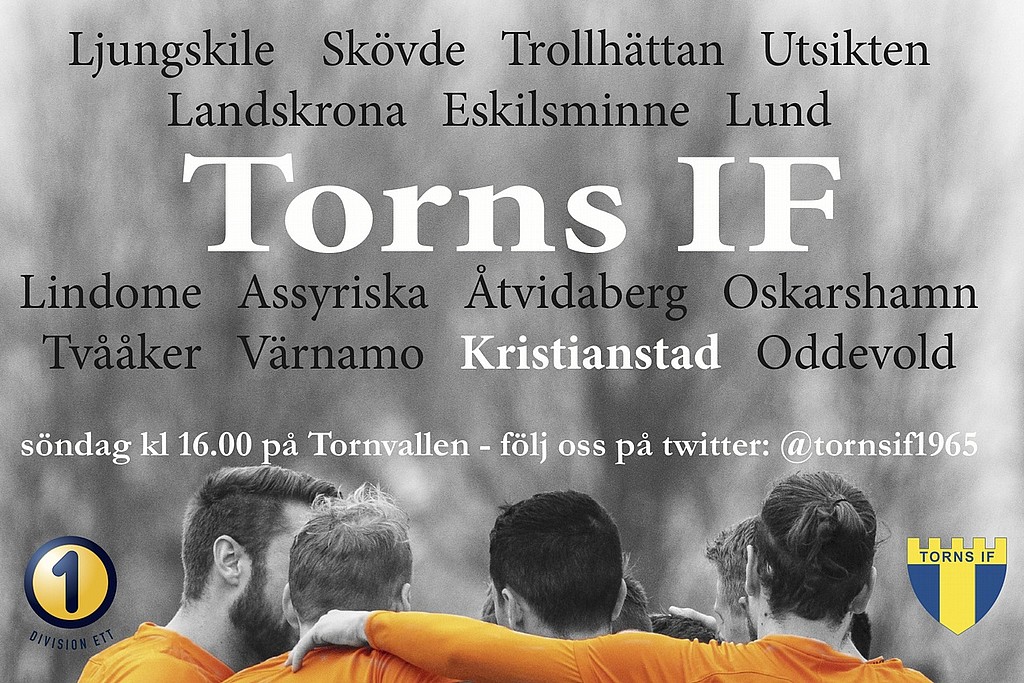 Nu drar Division 1 Södra igång igen efter sommaruppehållet. Torn inleder med att ta emot Kristianstad FC hemma på Tornvallen i Stångby. Avspark kl 16 idag söndag 4 augusti. Välkomna!